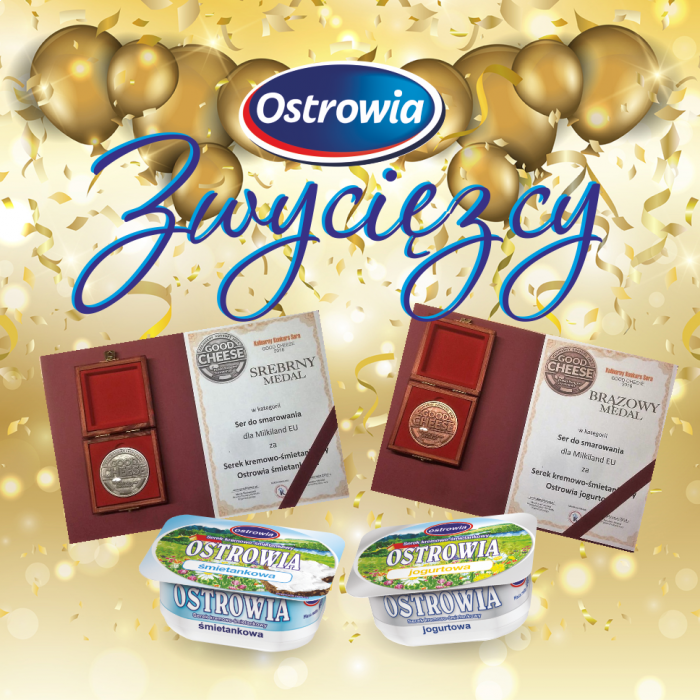 Serek Ostrowia śmietankowa ta serek Ostrowia jogurtowa zostały reprezentowane w kategorii konkursu "Ser do smarowania" i zostały nagrodzone za połączenie dobrego smaku i jakości.