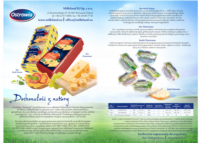 Mamy spieszyć podzielić się wiadomością, że jakość produktów Ostrowi zakładu znajduje się w województwie mazowieckim w Polsce i jest częścią międzynarodowej spółki holdingowej podziału Milkiland N.V. Europejskiej otrzymała wyróżnienie na łamach znanego polskiego profesjonalnym wydaniu "Dobrą Żywność".